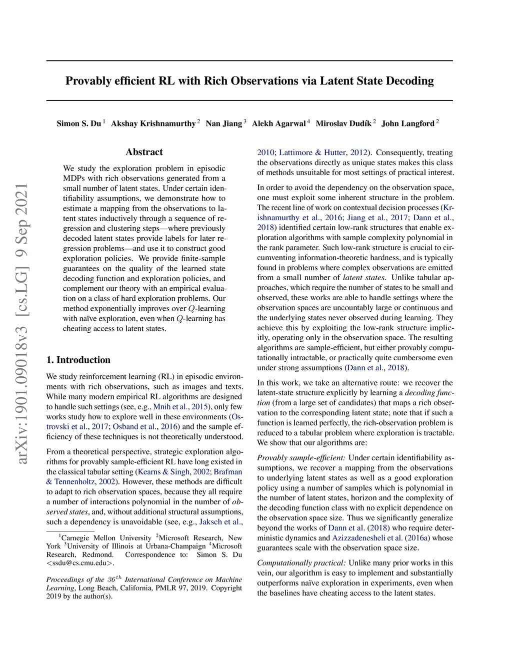Provably efficient RL with Rich Observations via Latent State Decoding