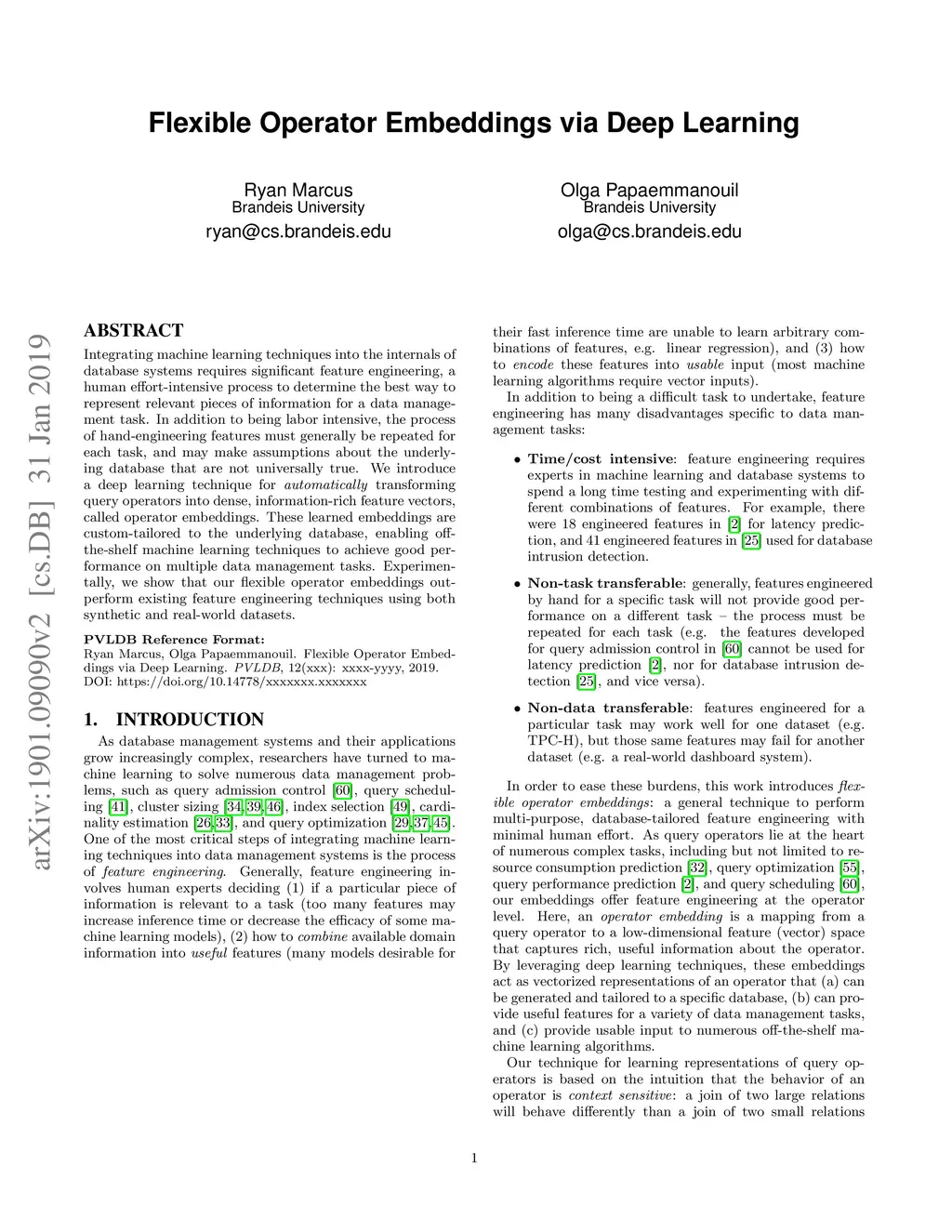 Integrating machine learning into the internals of database management systems requires significant feature engineering, a human effort-intensive process to determine the best way to represent the pieces of information that are relevant to a task. In addition to being labor intensive, the process of hand-engineering features must generally be repeated for each data management task, and may make assumptions about the underlying database that are not universally true. We introduce flexible operator embeddings, a deep learning technique for automatically transforming query operators into feature vectors that are useful for a multiple data management tasks and is custom-tailored to the underlying database. Our approach works by taking advantage of an operator's context, resulting in a neural network that quickly transforms sparse representations of query operators into dense, information-rich feature vectors. Experimentally, we show that our flexible operator embeddings perform well across a number of data management tasks, using both synthetic and real-world datasets.