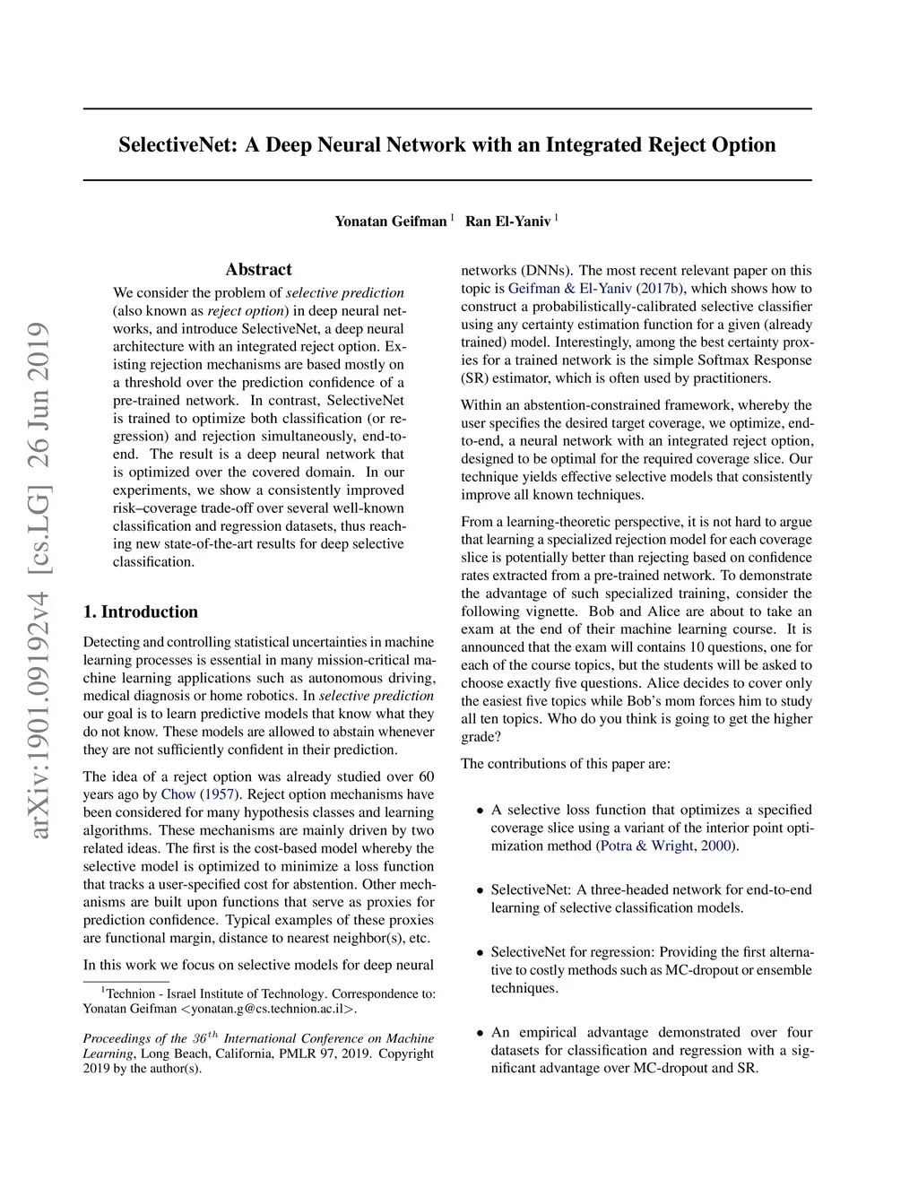 SelectiveNet: A Deep Neural Network with an Integrated Reject Option