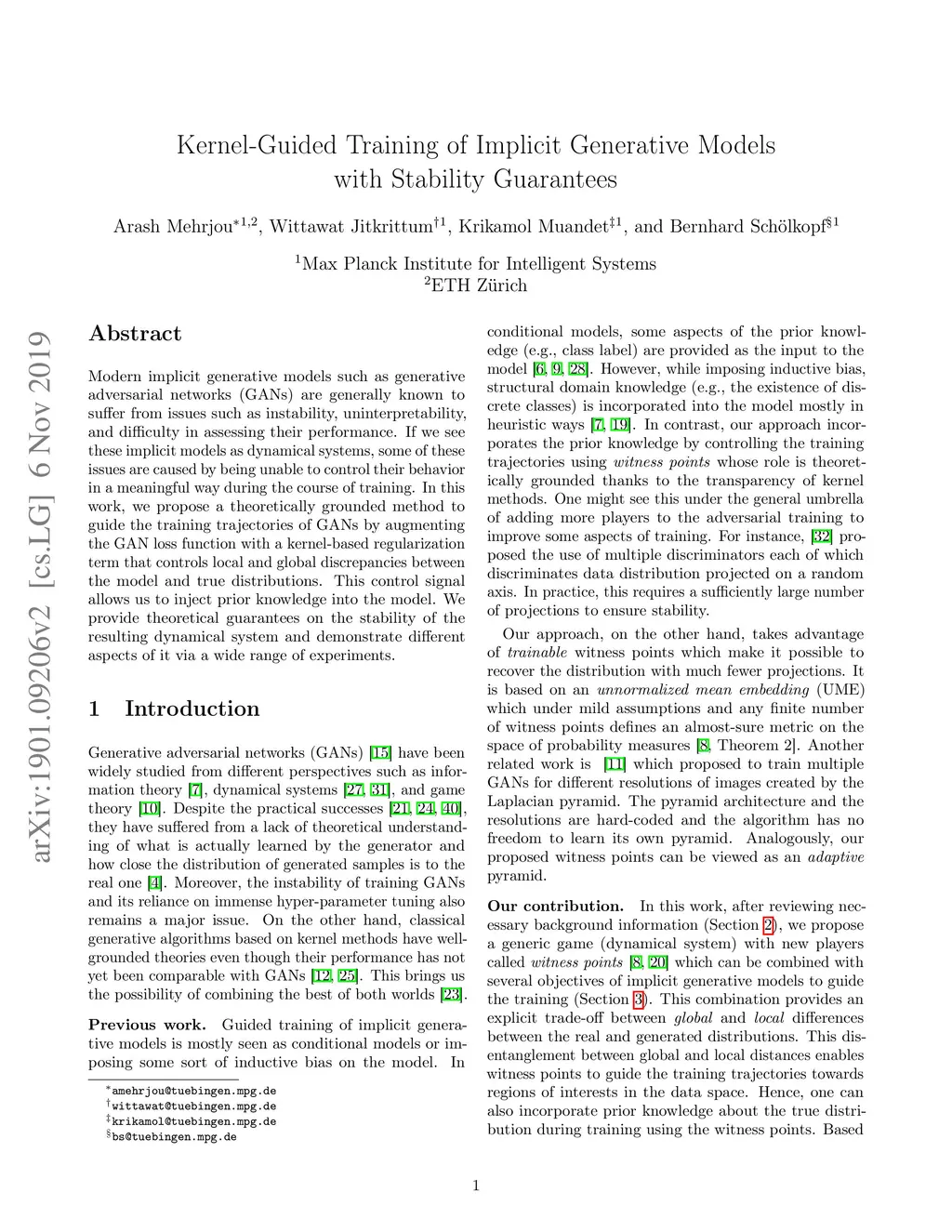 Kernel-Guided Training of Implicit Generative Models with Stability