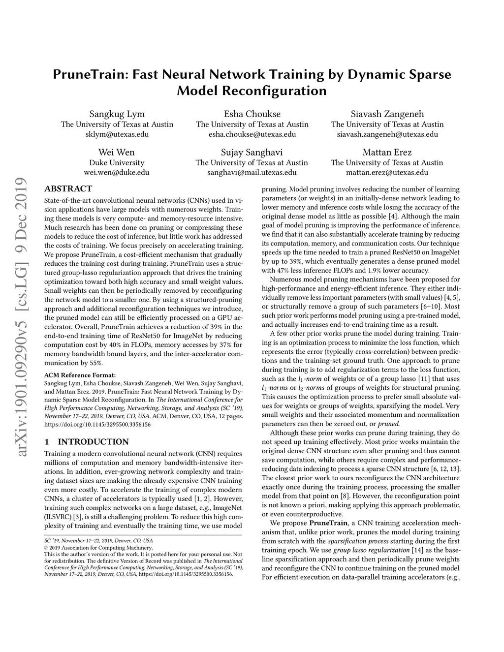 PruneTrain: Fast Neural Network Training by Dynamic Sparse Model
