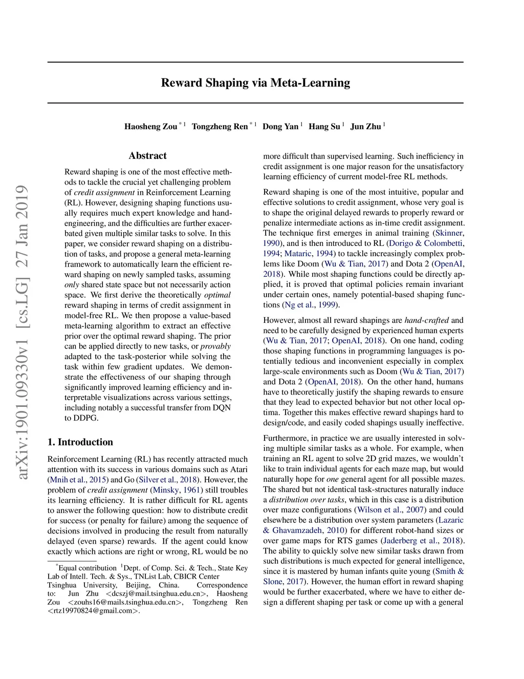 Reward Shaping via Meta-Learning