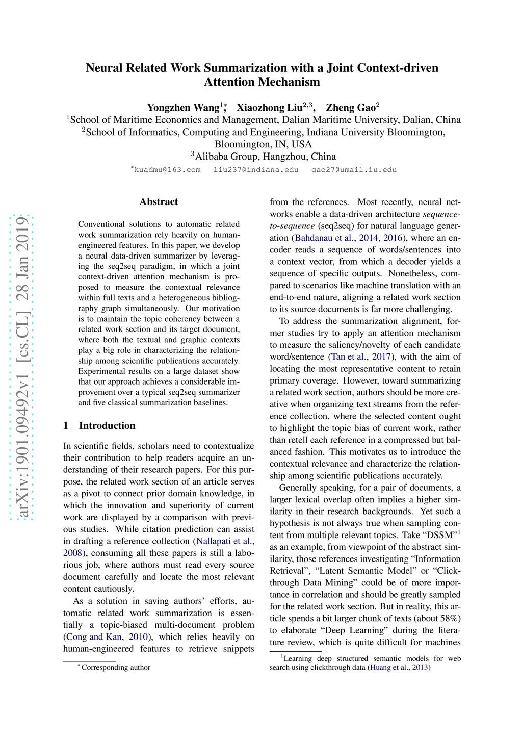 Neural Related Work Summarization with a Joint Context-driven Attention