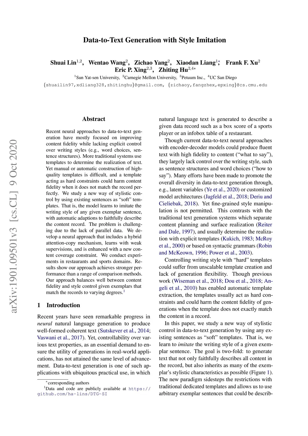 Data-to-Text Generation with Style Imitation