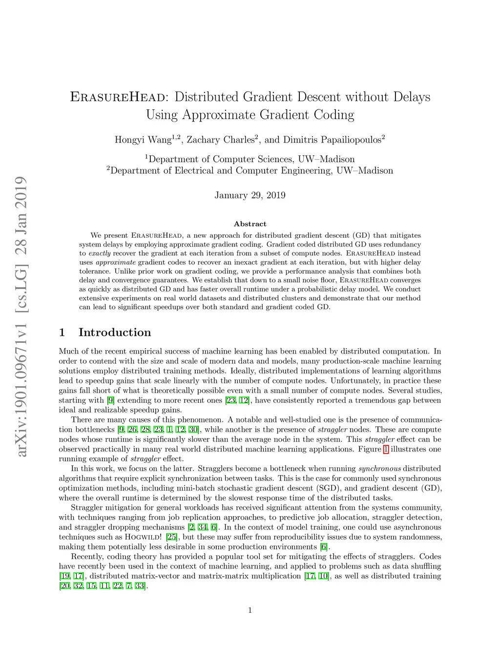ErasureHead: Distributed Gradient Descent without Delays Using