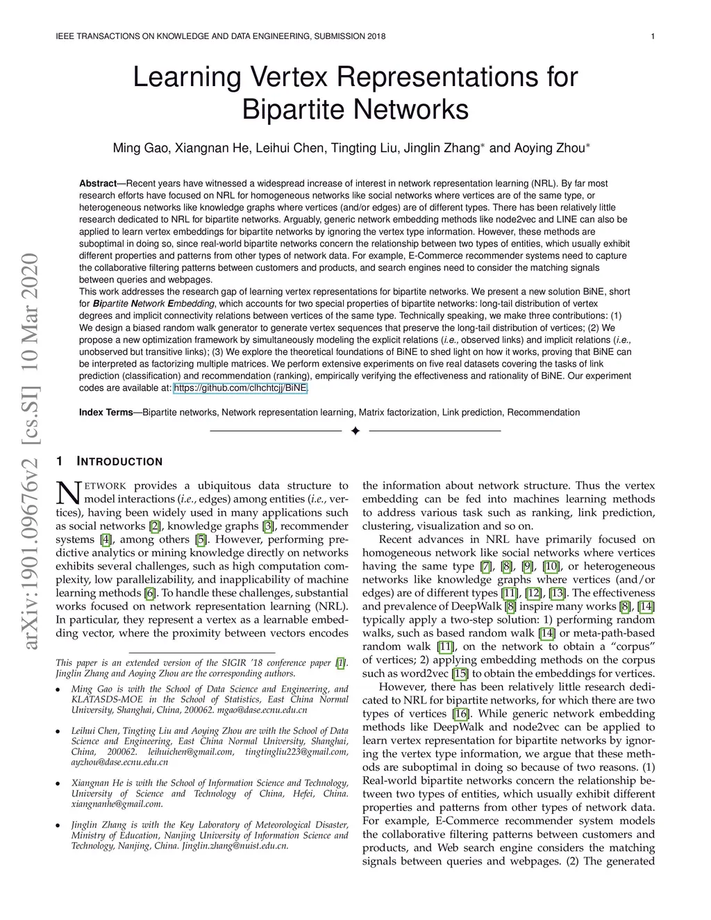 Recent years have witnessed a widespread increase of interest in network representation learning (NRL). By far most research efforts have focused on NRL for homogeneous networks like social networks where vertices are of the same type, or heterogeneous networks like knowledge graphs where vertices (and/or edges) are of different types. There has been relatively little research dedicated to NRL for bipartite networks. Arguably, generic network embedding methods like node2vec and LINE can also be applied to learn vertex embeddings for bipartite networks by ignoring the vertex type information. However, these methods are suboptimal in doing so, since real-world bipartite networks concern the relationship between two types of entities, which usually exhibit different properties and patterns from other types of network data. For example, E-Commerce recommender systems need to capture the collaborative filtering patterns between customers and products, and search engines need to consider the matching signals between queries and webpages.