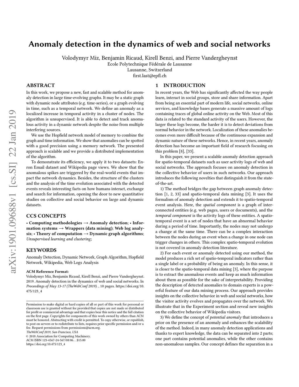 Anomaly detection in the dynamics of web and social networks