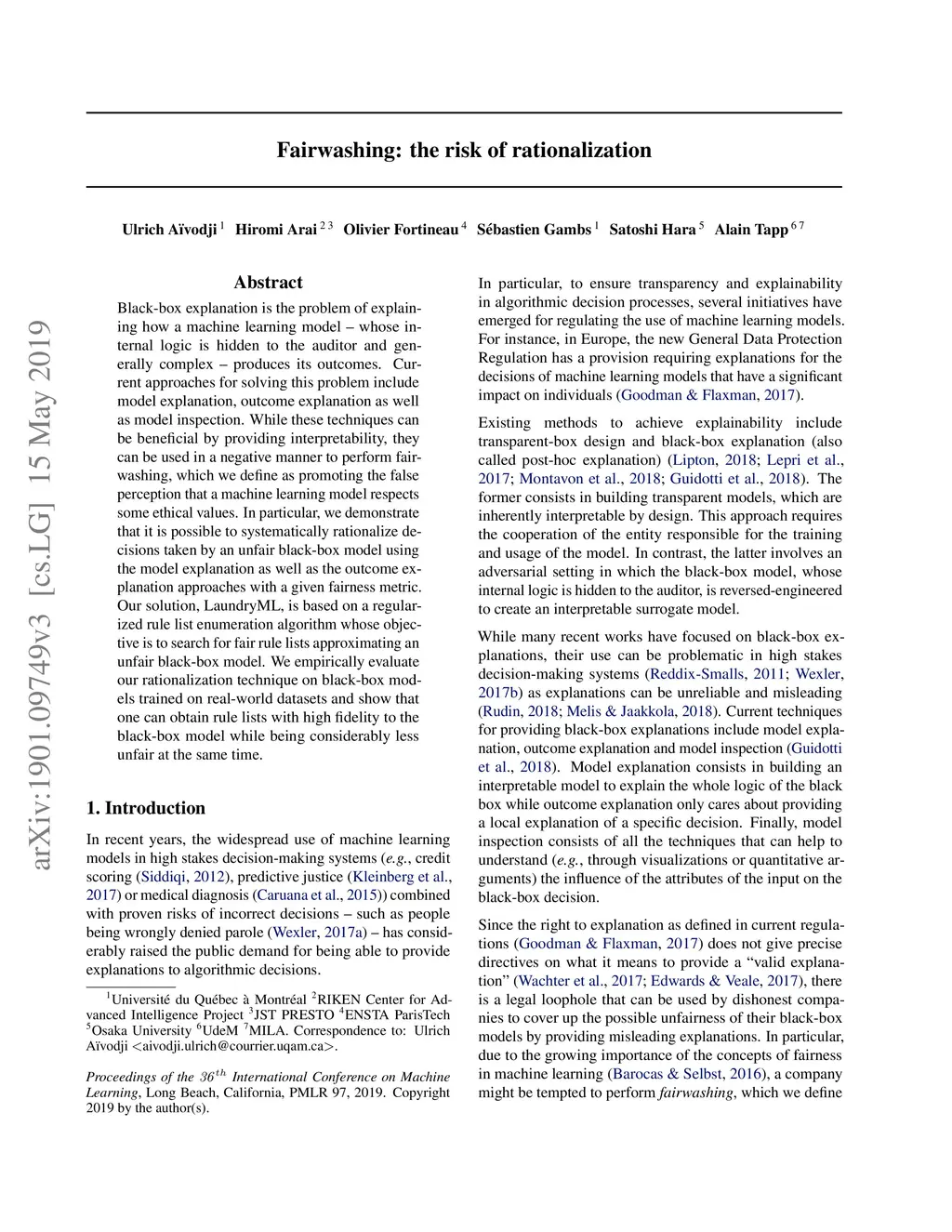 Fairwashing: the risk of rationalization