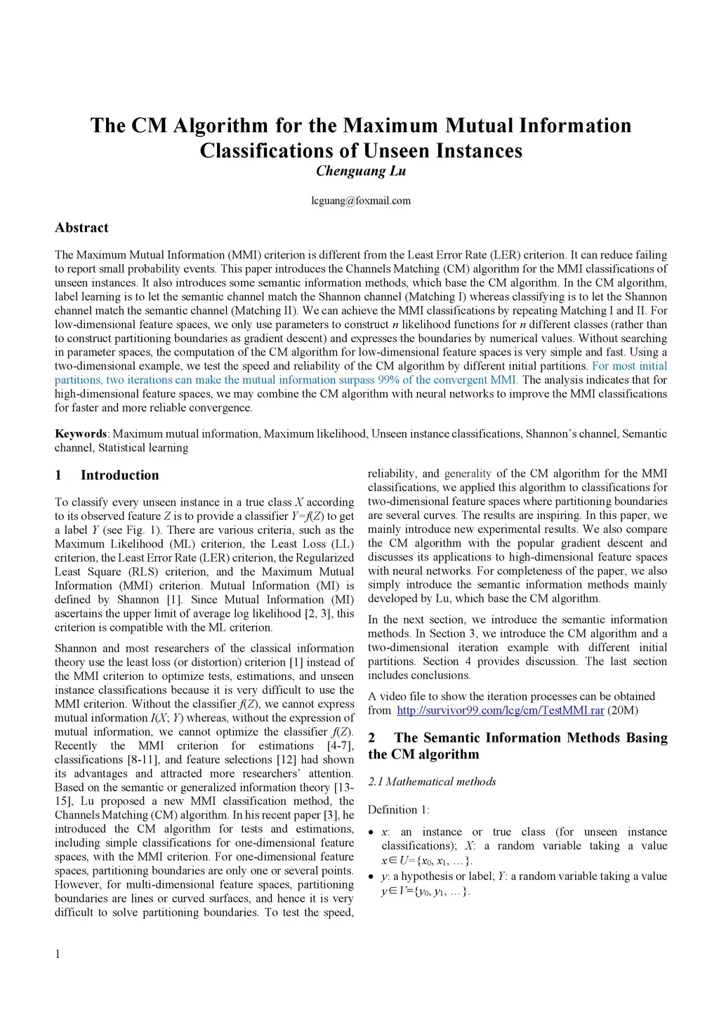 The CM Algorithm for the Maximum Mutual Information Classifications of
