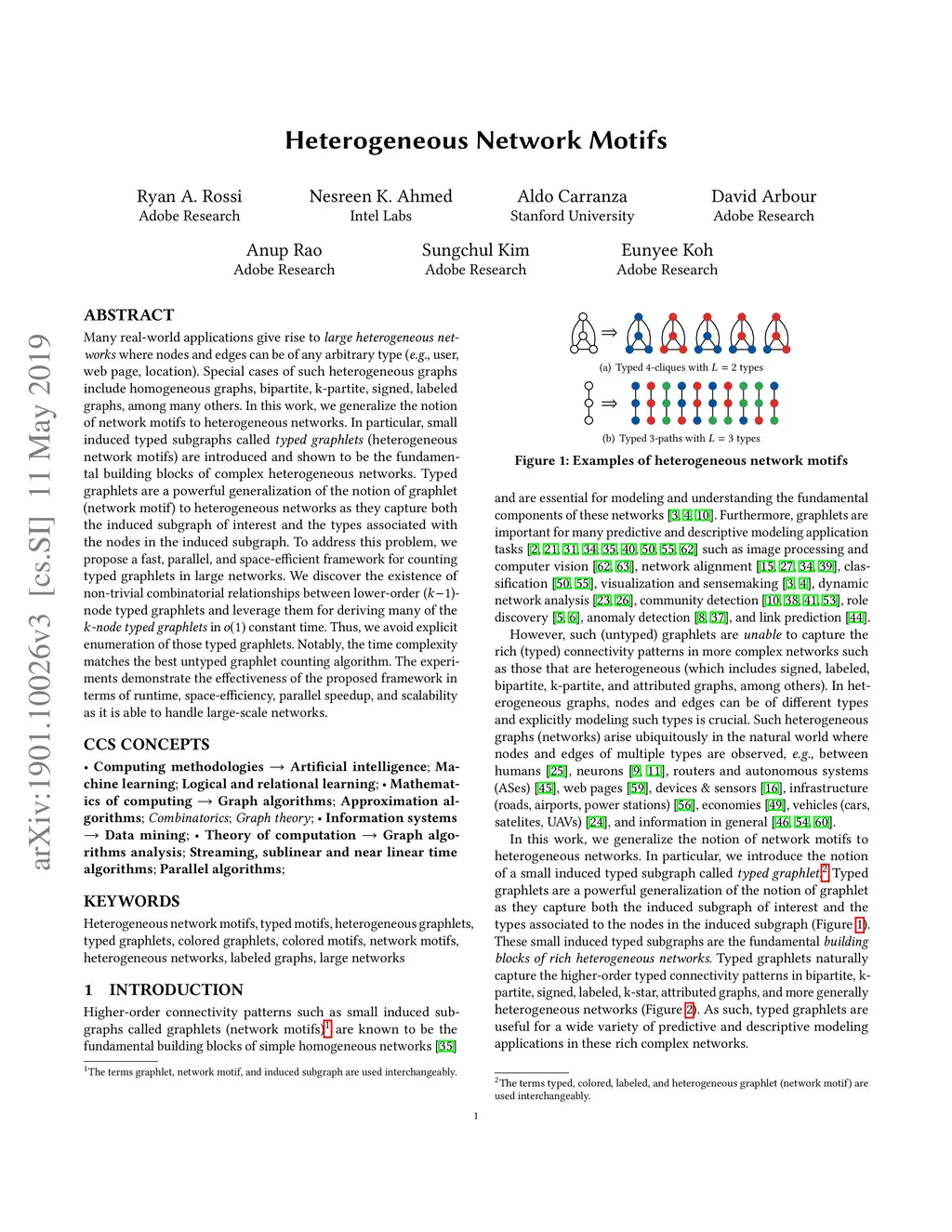 Many real-world applications give rise to large heterogeneous networks where nodes and edges can be of any arbitrary type (e.g., user, web page, location). Special cases of such heterogeneous graphs include homogeneous graphs, bipartite, k-partite, signed, labeled graphs, among many others. In this work, we generalize the notion of network motifs to heterogeneous networks. In particular, small induced typed subgraphs called typed graphlets (heterogeneous network motifs) are introduced and shown to be the fundamental building blocks of complex heterogeneous networks. Typed graphlets are a powerful generalization of the notion of graphlet (network motif) to heterogeneous networks as they capture both the induced subgraph of interest and the types associated with the nodes in the induced subgraph. To address this problem, we propose a fast, parallel, and space-efficient framework for counting typed graphlets in large networks. We discover the existence of non-trivial combinatorial relationships between lower-order (k1k-1)-node typed graphlets and leverage them for deriving many of the kk-node typed graphlets in o(1)o(1) constant time. Thus, we avoid explicit enumeration of those typed graphlets. Notably, the time complexity matches the best untyped graphlet counting algorithm. The experiments demonstrate the effectiveness of the proposed framework in terms of runtime, space-efficiency, parallel speedup, and scalability as it is able to handle large-scale networks.