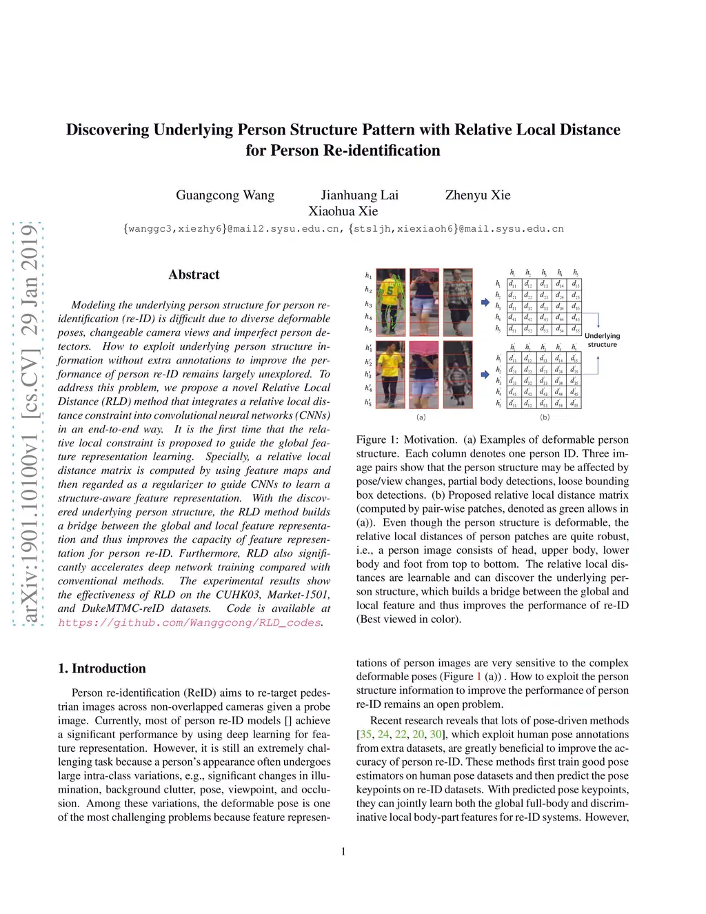 Modeling the underlying person structure for person re-identification (re-ID) is difficult due to diverse deformable poses, changeable camera views and imperfect person detectors. How to exploit underlying person structure information without extra annotations to improve the performance of person re-ID remains largely unexplored. To address this problem, we propose a novel Relative Local Distance (RLD) method that integrates a relative local distance constraint into convolutional neural networks (CNNs) in an end-to-end way. It is the first time that the relative local constraint is proposed to guide the global feature representation learning. Specially, a relative local distance matrix is computed by using feature maps and then regarded as a regularizer to guide CNNs to learn a structure-aware feature representation. With the discovered underlying person structure, the RLD method builds a bridge between the global and local feature representation and thus improves the capacity of feature representation for person re-ID. Furthermore, RLD also significantly accelerates deep network training compared with conventional methods. The experimental results show the effectiveness of RLD on the CUHK03, Market-1501, and DukeMTMC-reID datasets. Code is available at \url{https://github.com/Wanggcong/RLD_codes}.