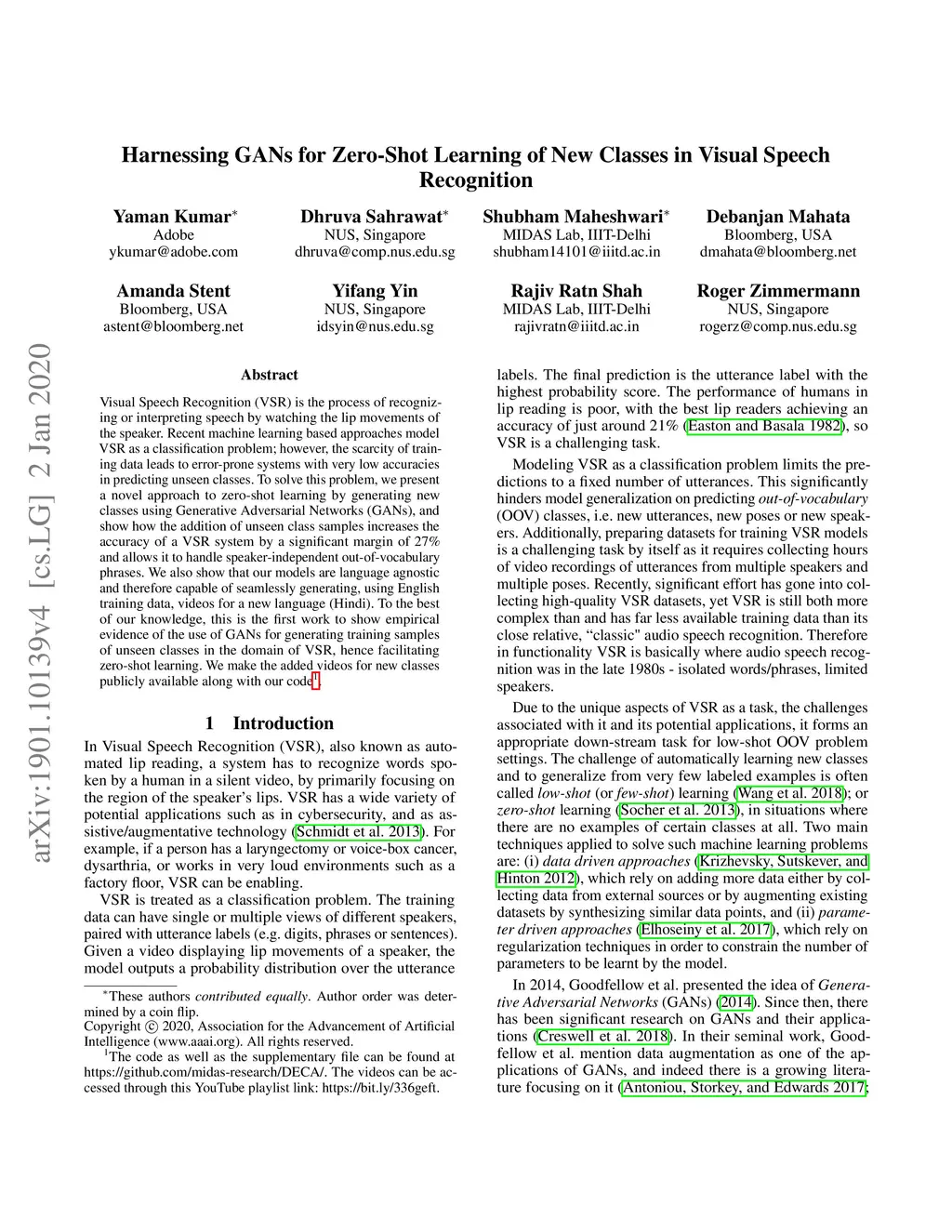 Harnessing GANs for Zero-shot Learning of New Classes in Visual Speech