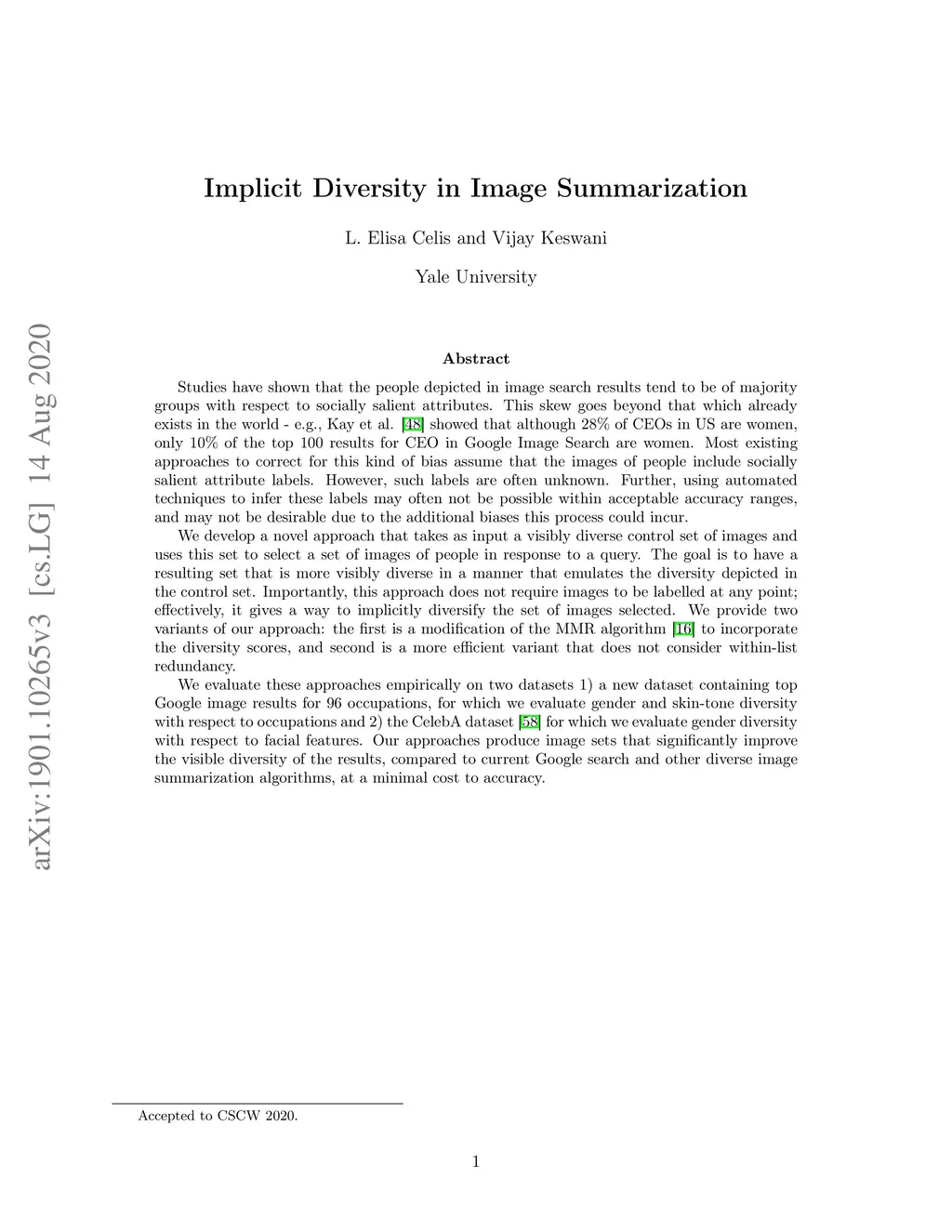 Studies have shown that the people depicted in image search results tend to be of majority groups with respect to socially salient attributes. This skew goes beyond that which already exists in the world - e.g., Kay et al. showed that although 28% of CEOs in US are women, only 10% of the top 100 results for CEO in Google Image Search are women. Most existing approaches to correct for this kind of bias assume that the images of people include socially salient attribute labels. However, such labels are often unknown. Further, using automated techniques to infer these labels may often not be possible within acceptable accuracy ranges, and may not be desirable due to the additional biases this process could incur. We develop a novel approach that takes as input a visibly diverse control set of images and uses this set to select a set of images of people in response to a query. The goal is to have a resulting set that is more visibly diverse in a manner that emulates the diversity depicted in the control set. Importantly, this approach does not require images to be labelled at any point; effectively, it gives a way to implicitly diversify the set of images selected. We provide two variants of our approach: the first is a modification of the MMR algorithm to incorporate the diversity scores, and second is a more efficient variant that does not consider within-list redundancy. We evaluate these approaches empirically on two datasets 1) a new dataset containing top Google image results for 96 occupations, for which we evaluate gender and skin-tone diversity with respect to occupations and 2) the CelebA dataset for which we evaluate gender diversity with respect to facial features. Our approaches produce image sets that significantly improve the visible diversity of the results, compared to current Google search and other diverse image summarization algorithms, at a minimal cost to accuracy.