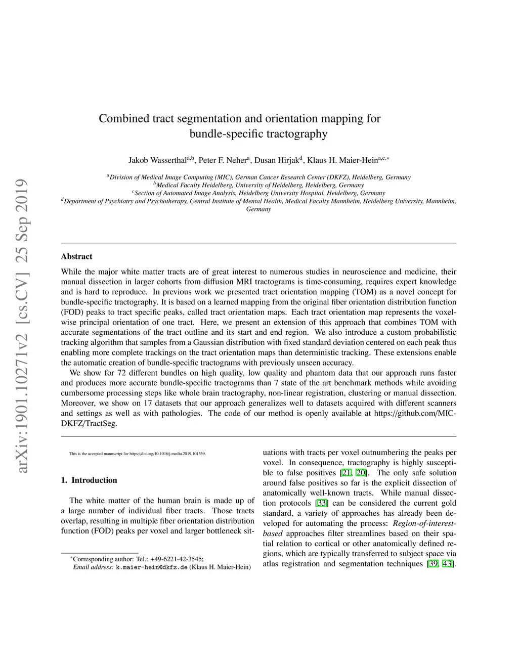 Combined tract segmentation and orientation mapping for bundle-specific