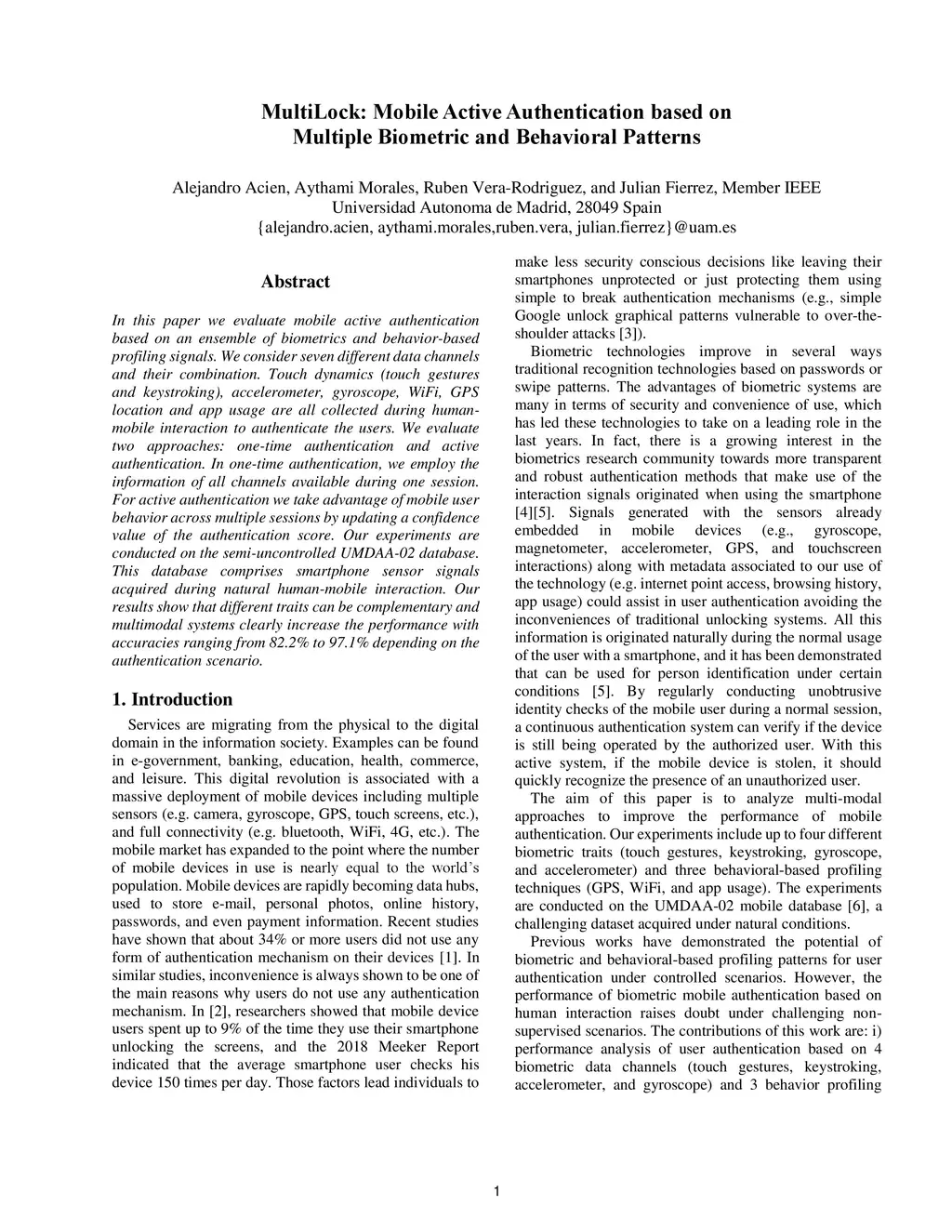 MultiLock: Mobile Active Authentication based on Multiple Biometric and