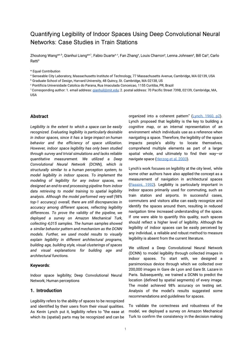 Quantifying Legibility of Indoor Spaces Using Deep Convolutional Neural