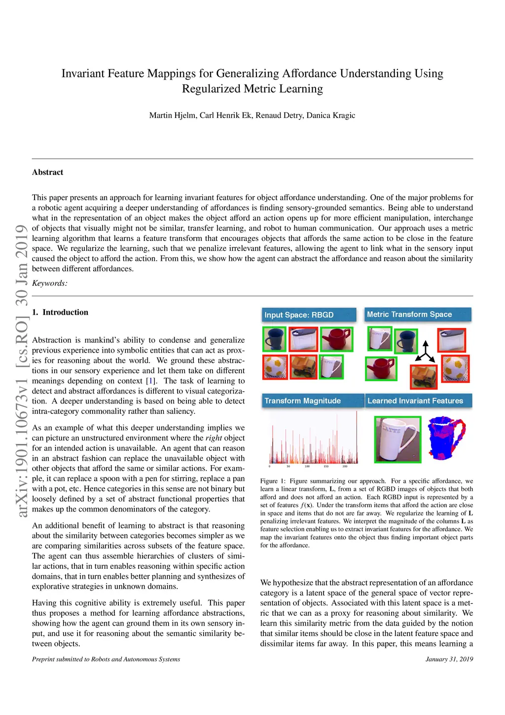 Invariant Feature Mappings for Generalizing Affordance Understanding