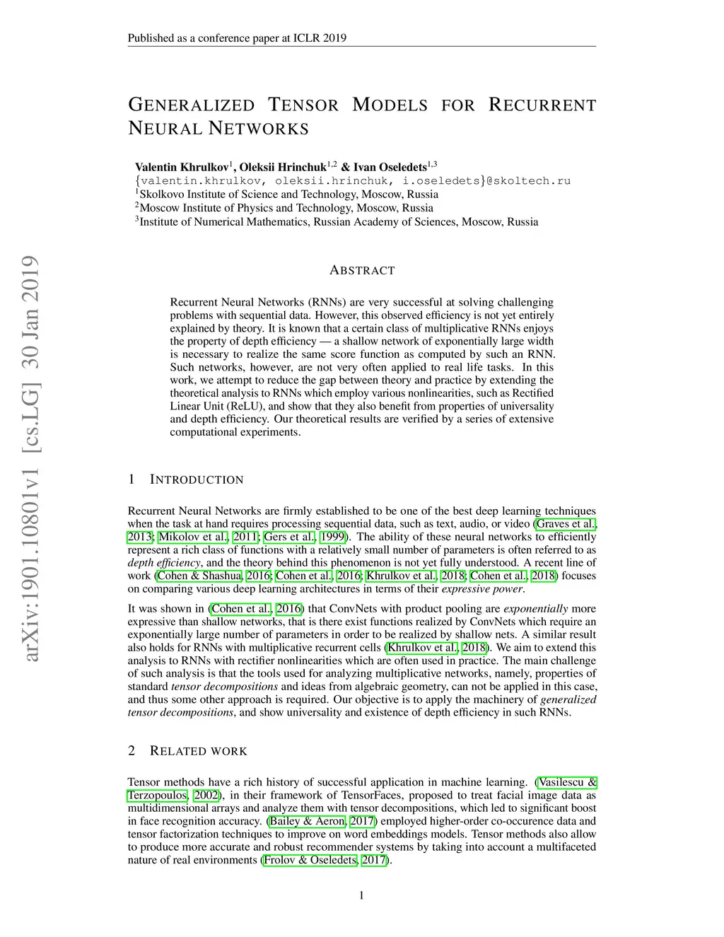 Generalized Tensor Models for Recurrent Neural Networks