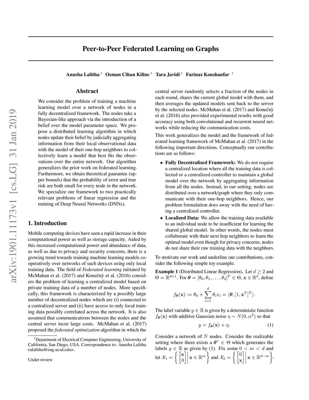 Peer-to-peer Federated Learning on Graphs