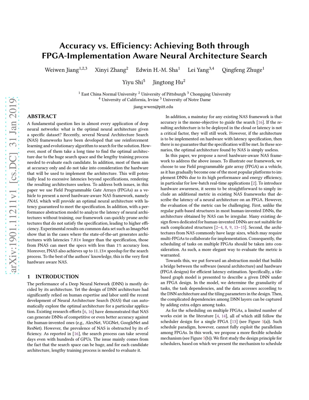 A fundamental question lies in almost every application of deep neural networks: what is the optimal neural architecture given a specific dataset? Recently, several Neural Architecture Search (NAS) frameworks have been developed that use reinforcement learning and evolutionary algorithm to search for the solution. However, most of them take a long time to find the optimal architecture due to the huge search space and the lengthy training process needed to evaluate each candidate. In addition, most of them aim at accuracy only and do not take into consideration the hardware that will be used to implement the architecture. This will potentially lead to excessive latencies beyond specifications, rendering the resulting architectures useless. To address both issues, in this paper we use Field Programmable Gate Arrays (FPGAs) as a vehicle to present a novel hardware-aware NAS framework, namely FNAS, which will provide an optimal neural architecture with latency guaranteed to meet the specification. In addition, with a performance abstraction model to analyze the latency of neural architectures without training, our framework can quickly prune architectures that do not satisfy the specification, leading to higher efficiency. Experimental results on common data set such as ImageNet show that in the cases where the state-of-the-art generates architectures with latencies 7.81x longer than the specification, those from FNAS can meet the specs with less than 1% accuracy loss. Moreover, FNAS also achieves up to 11.13x speedup for the search process. To the best of the authors' knowledge, this is the very first hardware aware NAS.