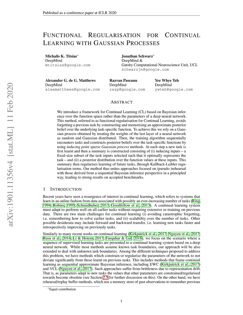 Functional Regularisation for Continual Learning with Gaussian Processes