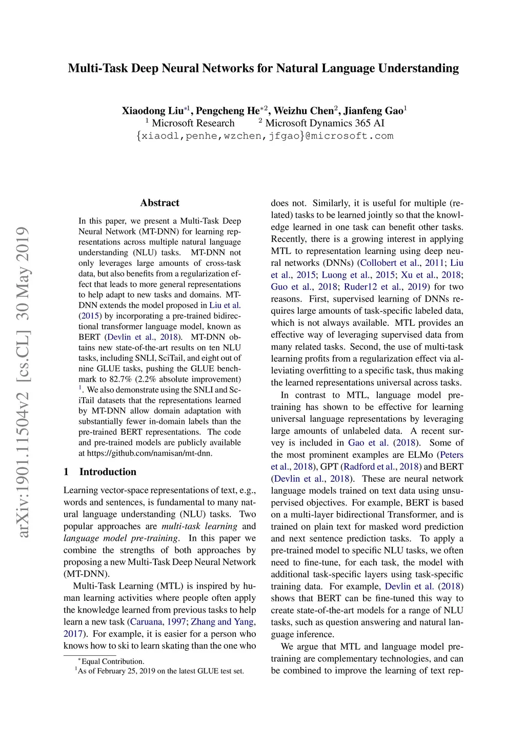 Multi-Task Deep Neural Networks for Natural Language Understanding
