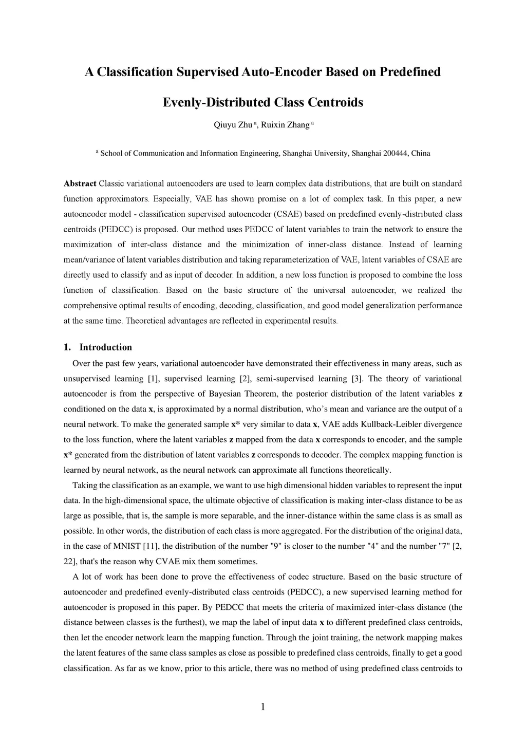 Classic variational autoencoders are used to learn complex data distributions, that are built on standard function approximators. Especially, VAE has shown promise on a lot of complex task. In this paper, a new autoencoder model - classification supervised autoencoder (CSAE) based on predefined evenly-distributed class centroids (PEDCC) is proposed. Our method uses PEDCC of latent variables to train the network to ensure the maximization of inter-class distance and the minimization of inner-class distance. Instead of learning mean/variance of latent variables distribution and taking reparameterization of VAE, latent variables of CSAE are directly used to classify and as input of decoder. In addition, a new loss function is proposed to combine the loss function of classification. Based on the basic structure of the universal autoencoder, we realized the comprehensive optimal results of encoding, decoding, classification, and good model generalization performance at the same time. Theoretical advantages are reflected in experimental results.