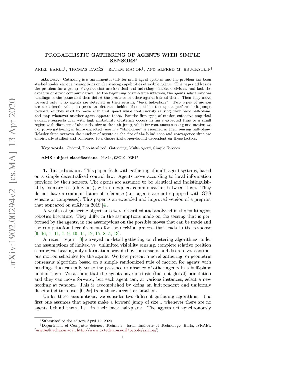 Probabilistic Gathering Of Agents With Simple Sensors