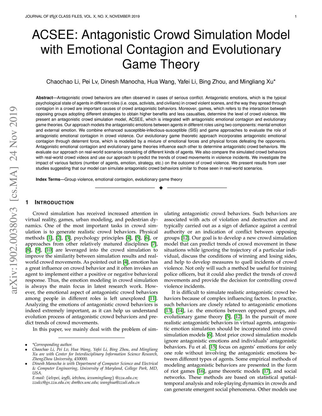 ACSEE: Antagonistic Crowd Simulation Model with Emotional Contagion and