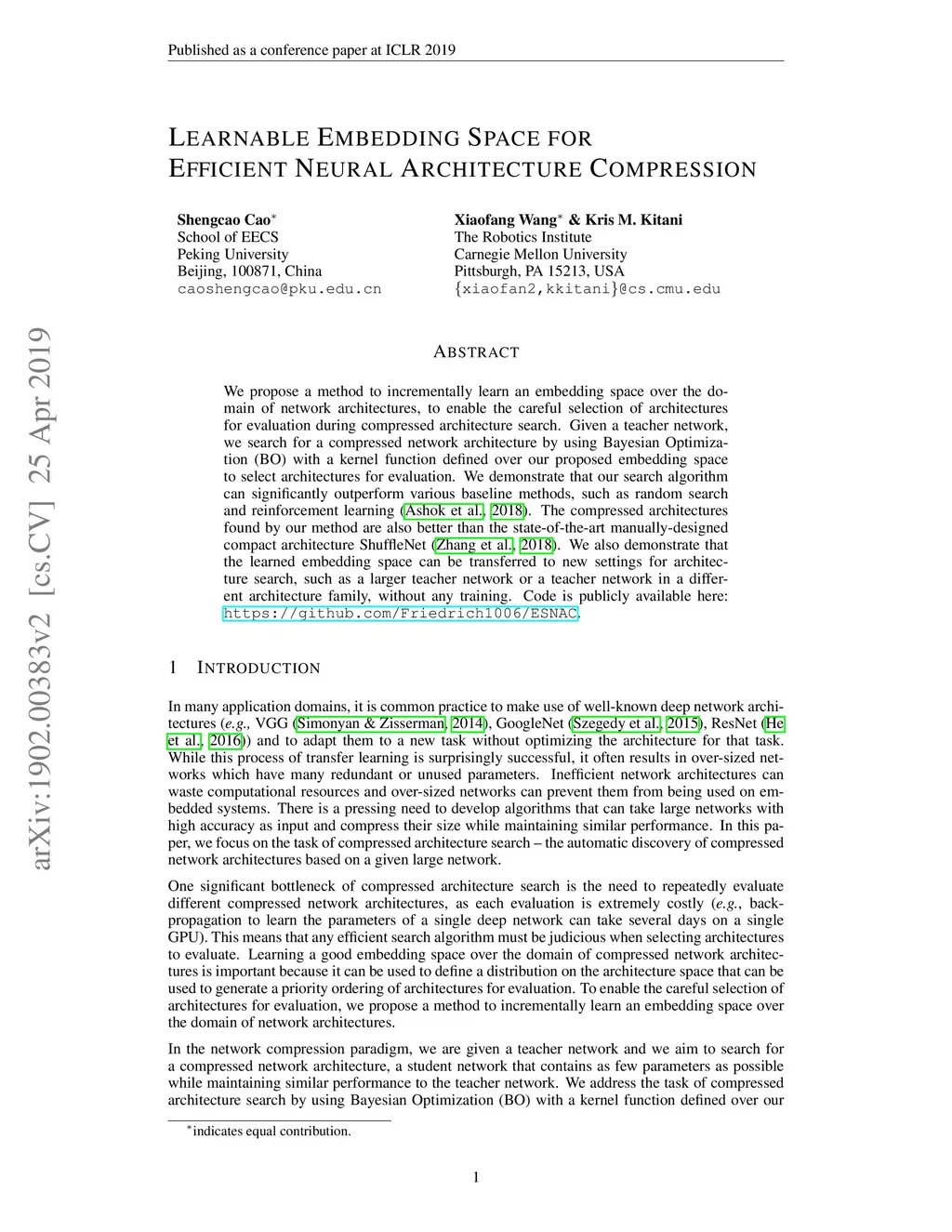Learnable Embedding Space for Efficient Neural Architecture Compression