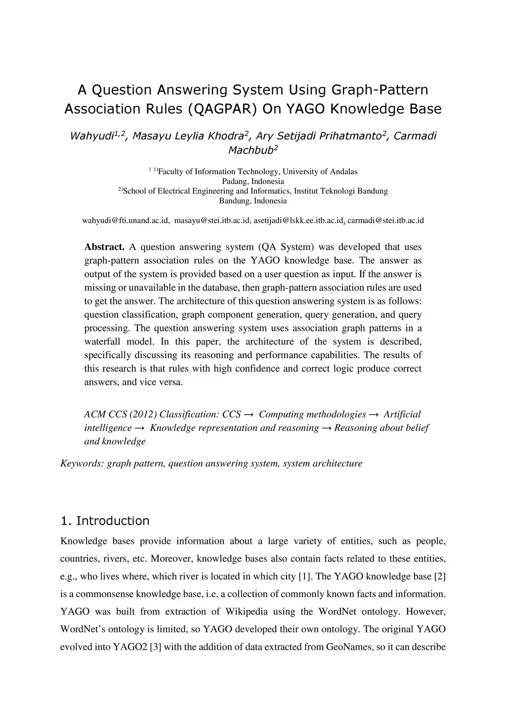 (QAGPAR) On YAGO Knowledge Base