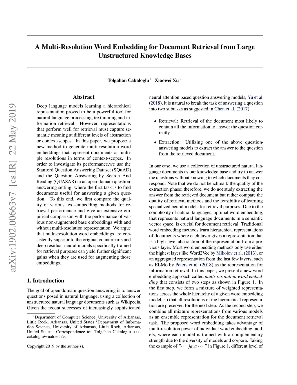 A Multi-Resolution Word Embedding for Document Retrieval from Large