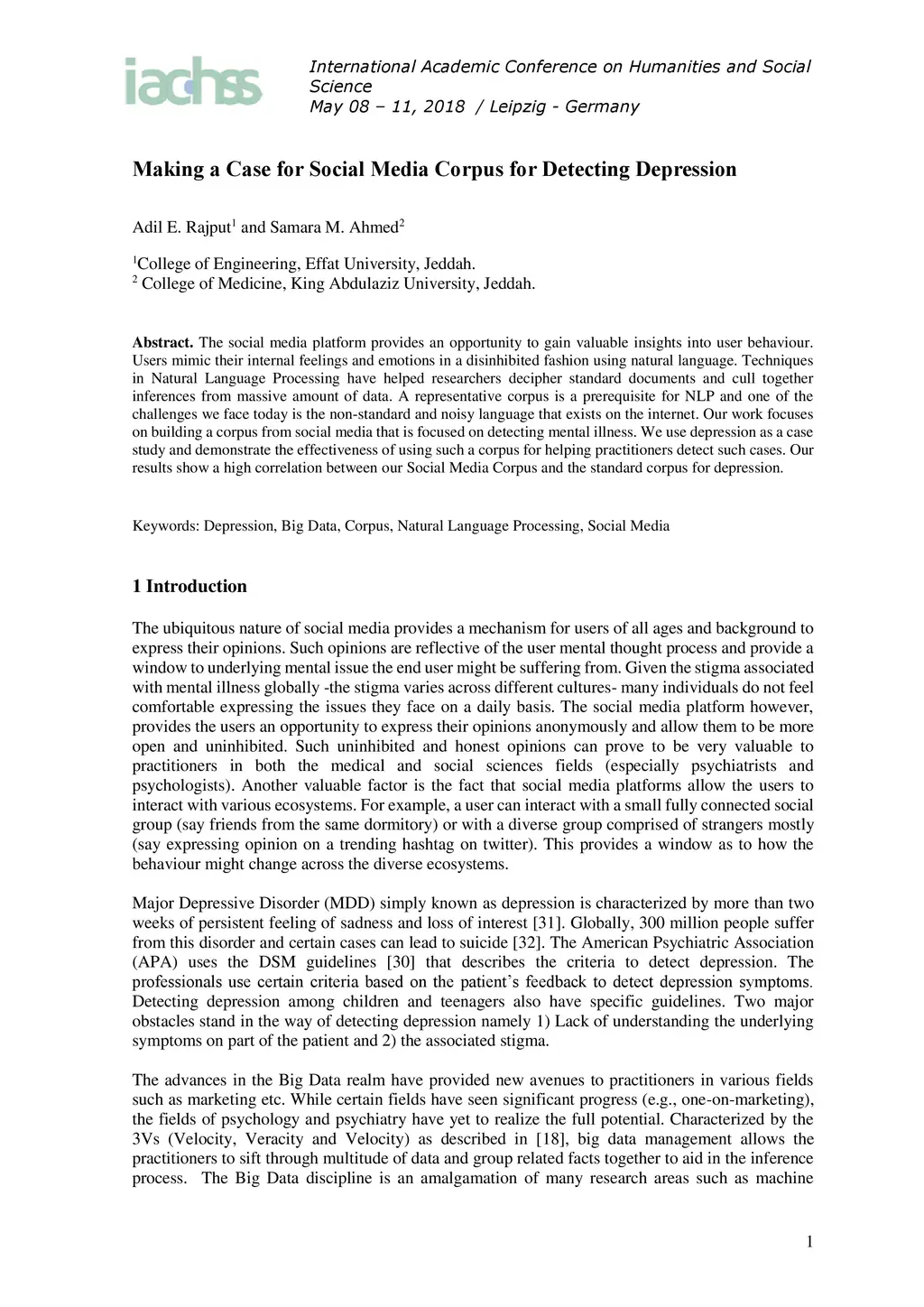 The social media platform provides an opportunity to gain valuable insights into user behaviour. Users mimic their internal feelings and emotions in a disinhibited fashion using natural language. Techniques in Natural Language Processing have helped researchers decipher standard documents and cull together inferences from massive amount of data. A representative corpus is a prerequisite for NLP and one of the challenges we face today is the non-standard and noisy language that exists on the internet. Our work focuses on building a corpus from social media that is focused on detecting mental illness. We use depression as a case study and demonstrate the effectiveness of using such a corpus for helping practitioners detect such cases. Our results show a high correlation between our Social Media Corpus and the standard corpus for depression.