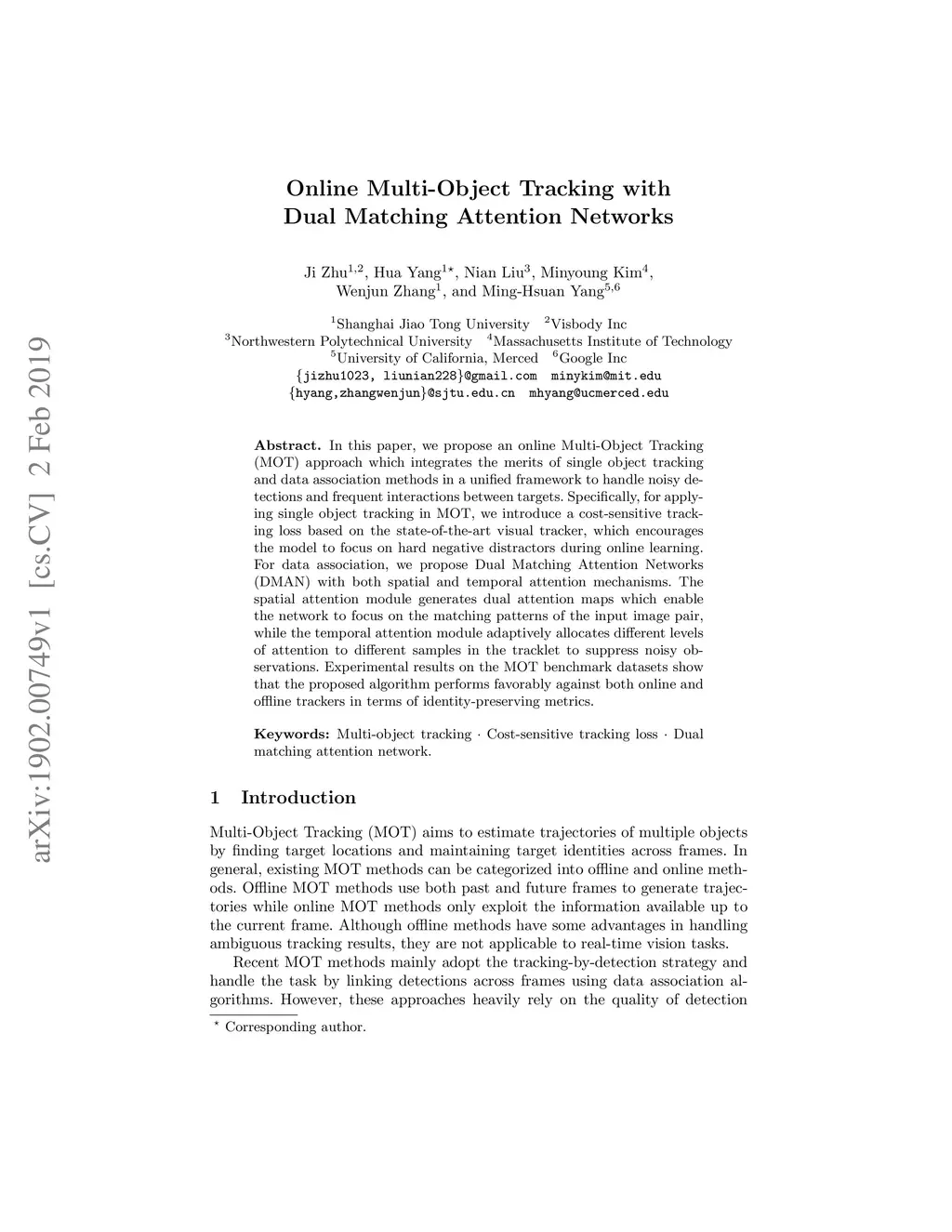 Online Multi-Object Tracking with Dual Matching Attention Networks