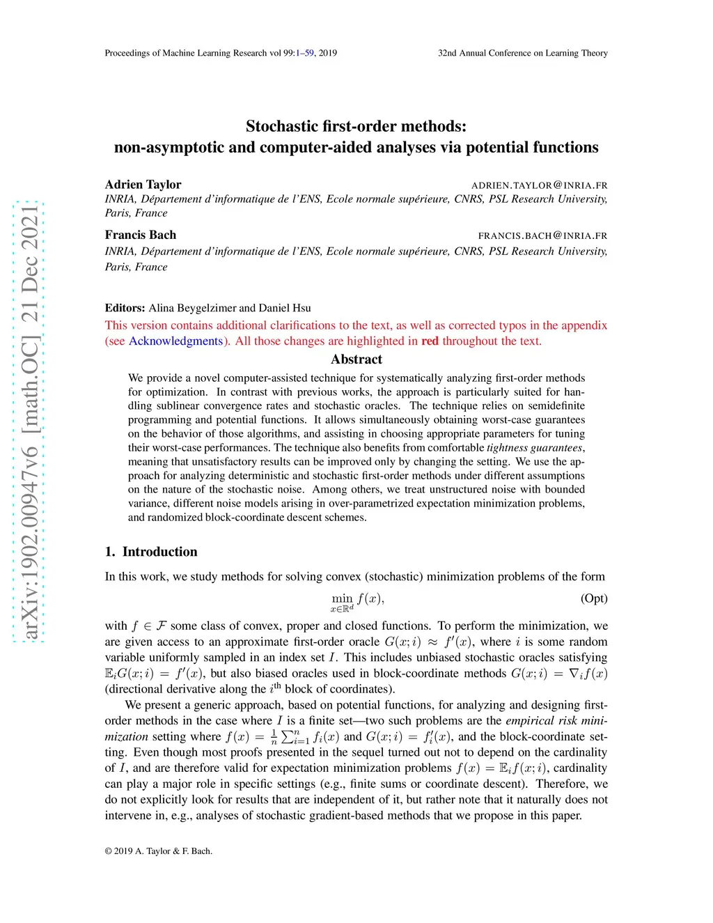 We provide a novel computer-assisted technique for systematically analyzing first-order methods for optimization. In contrast with previous works, the approach is particularly suited for handling sublinear convergence rates and stochastic oracles. The technique relies on semidefinite programming and potential functions. It allows simultaneously obtaining worst-case guarantees on the behavior of those algorithms, and assisting in choosing appropriate parameters for tuning their worst-case performances. The technique also benefits from comfortable tightness guarantees, meaning that unsatisfactory results can be improved only by changing the setting. We use the approach for analyzing deterministic and stochastic first-order methods under different assumptions on the nature of the stochastic noise. Among others, we treat unstructured noise with bounded variance, different noise models arising in over-parametrized expectation minimization problems, and randomized block-coordinate descent schemes.