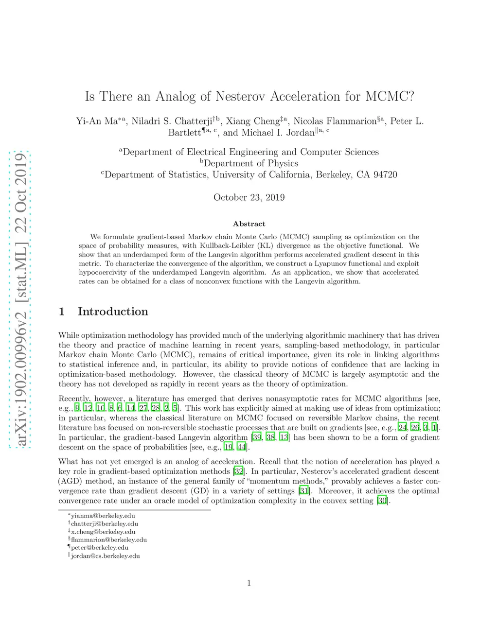Is There an Analog of Nesterov Acceleration for MCMC?