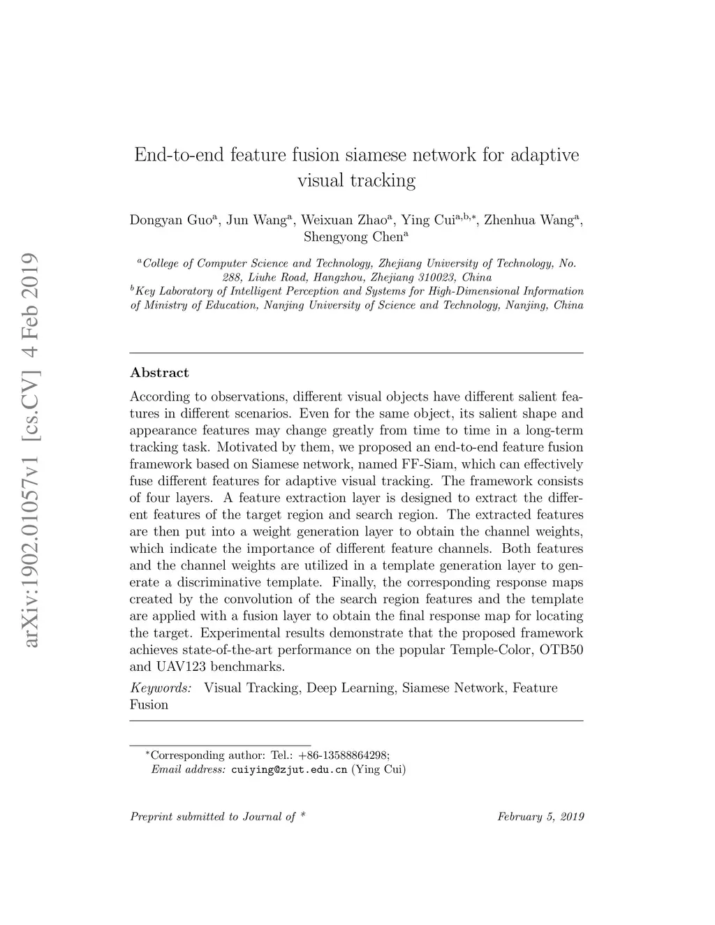 End-to-end feature fusion siamese network for adaptive visual tracking