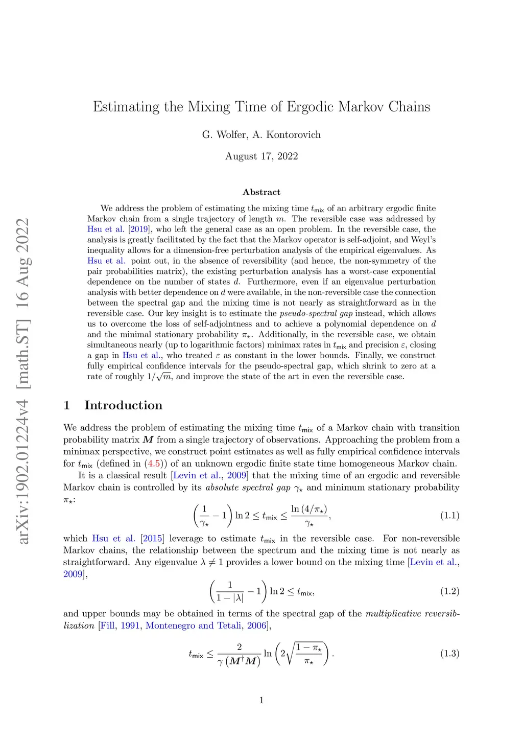 We address the problem of estimating the mixing time of an arbitrary ergodic finite-state Markov chain from a single trajectory of length . The reversible case was addressed by Hsu et al. [2019], who left the general case as an open problem. In the reversible case, the analysis is greatly facilitated by the fact that the Markov operator is self-adjoint, and Weyl's inequality allows for a dimension-free perturbation analysis of the empirical eigenvalues. As Hsu et al. point out, in the absence of reversibility (which induces asymmetric pair probabilities matrices), the existing perturbation analysis has a worst-case exponential dependence on the number of states . Furthermore, even if an eigenvalue perturbation analysis with better dependence on were available, in the non-reversible case the connection between the spectral gap and the mixing time is not nearly as straightforward as in the reversible case. Our key insight is to estimate the pseudo-spectral gap instead, which allows us to overcome the loss of symmetry and to achieve a polynomial dependence on the minimal stationary probability and . Additionally, in the reversible case, we obtain simultaneous nearly (up to logarithmic factors) minimax rates in and precision , closing a gap in Hsu et al., who treated as constant in the lower bounds. Finally, we construct fully empirical confidence intervals for , which shrink to zero at a rate of roughly , and improve the state of the art in even the reversible case.