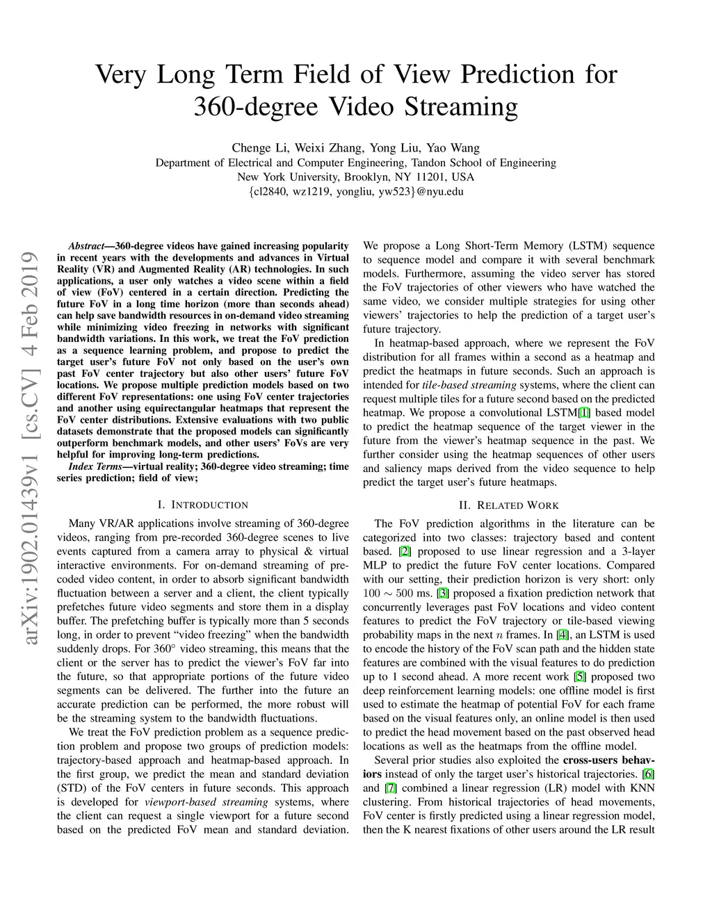 Very Long Term Field of View Prediction for 360-degree Video Streaming