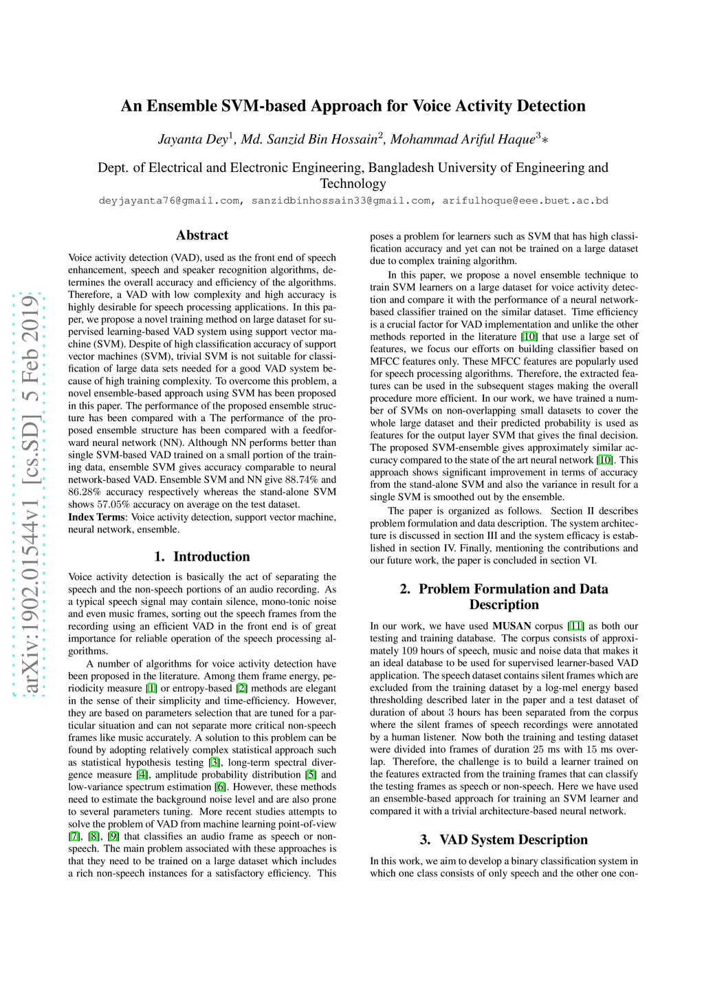 An Ensemble SVM-based Approach for Voice Activity Detection