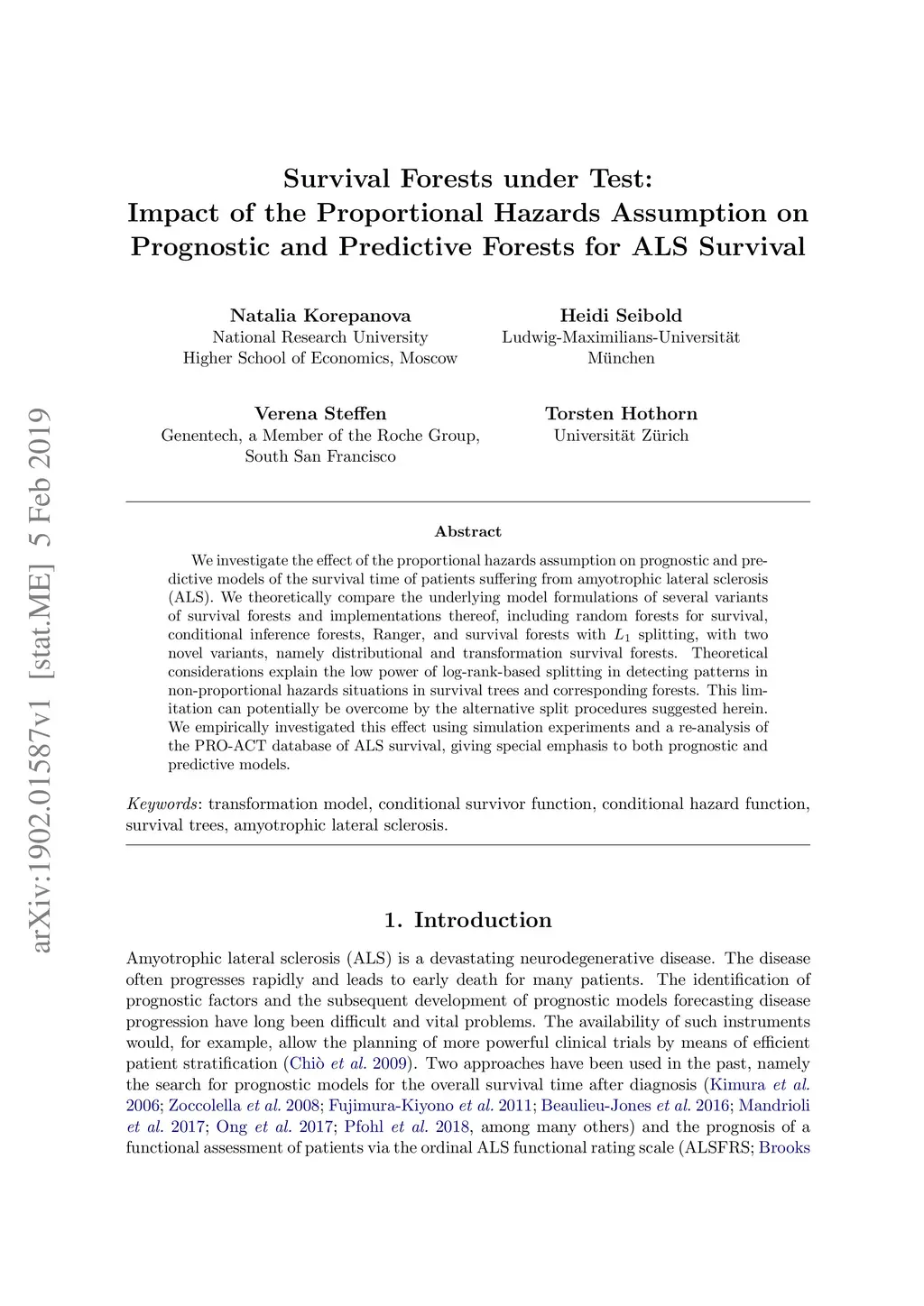Assumption on Prognostic and Predictive Forests for ALS Survival