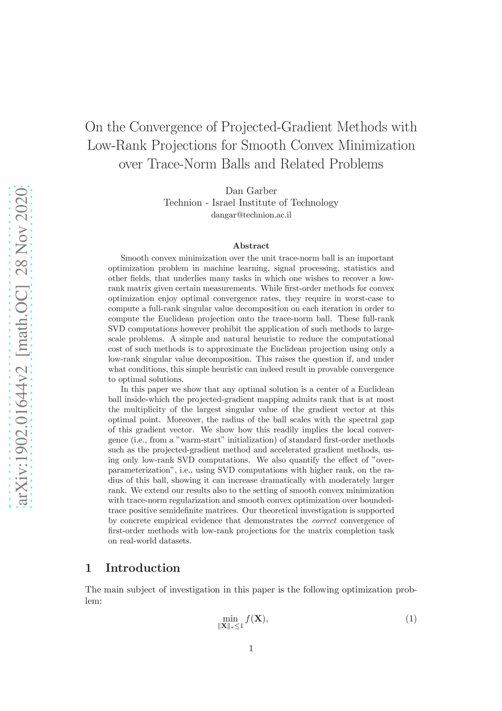 Smooth convex minimization over the unit trace-norm ball is an important optimization problem in machine learning, signal processing, statistics and other fields, that underlies many tasks in which one wishes to recover a low-rank matrix given certain measurements. While first-order methods for convex optimization enjoy optimal convergence rates, they require in worst-case to compute a full-rank SVD on each iteration, in order to compute the projection onto the trace-norm ball. These full-rank SVD computations however prohibit the application of such methods to large problems. A simple and natural heuristic to reduce the computational cost is to approximate the projection using only a low-rank SVD. This raises the question if, and under what conditions, this simple heuristic can indeed result in provable convergence to the optimal solution. In this paper we show that any optimal solution is a center of a Euclid. ball inside-which the projected-gradient mapping admits rank that is at most the multiplicity of the largest singular value of the gradient vector. Moreover, the radius of the ball scales with the spectral gap of this gradient vector. We show how this readily implies the local convergence (i.e., from a "warm-start" initialization) of standard first-order methods, using only low-rank SVD computations. We also quantify the effect of "over-parameterization", i.e., using SVD computations with higher rank, on the radius of this ball, showing it can increase dramatically with moderately larger rank. We extend our results also to the setting of optimization with trace-norm regularization and optimization over bounded-trace positive semidefinite matrices. Our theoretical investigation is supported by concrete empirical evidence that demonstrates the \textit{correct} convergence of first-order methods with low-rank projections on real-world datasets.