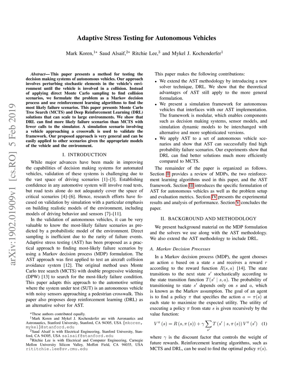 Adaptive Stress Testing for Autonomous Vehicles