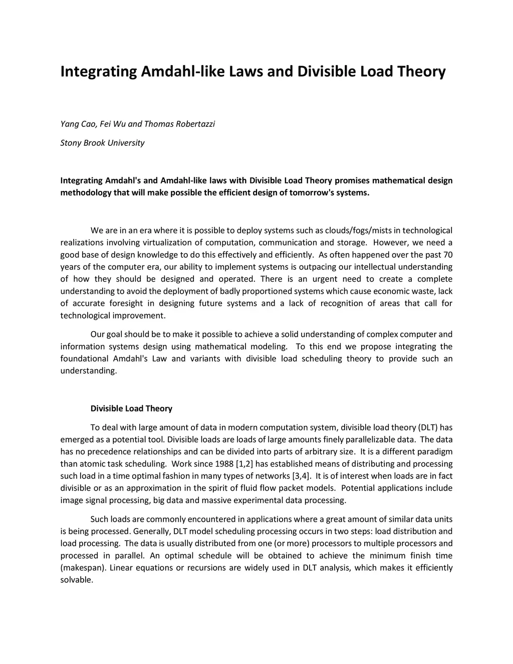 Integrating Amdahl's and Amdahl-like laws with Divisible Load Theory promises mathematical design methodology that will make possible the efficient design of tomorrow's systems.