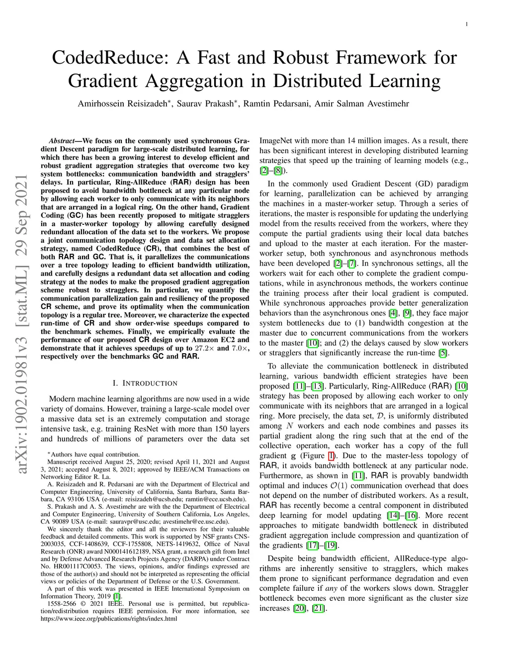 CodedReduce: A Fast and Robust Framework for Gradient Aggregation in
