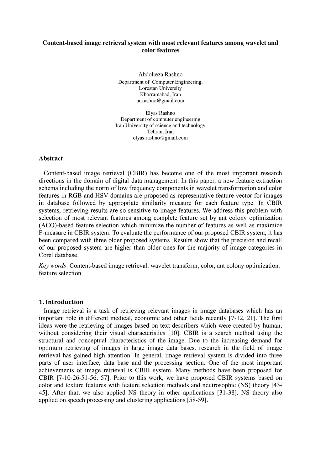 wavelet and color features