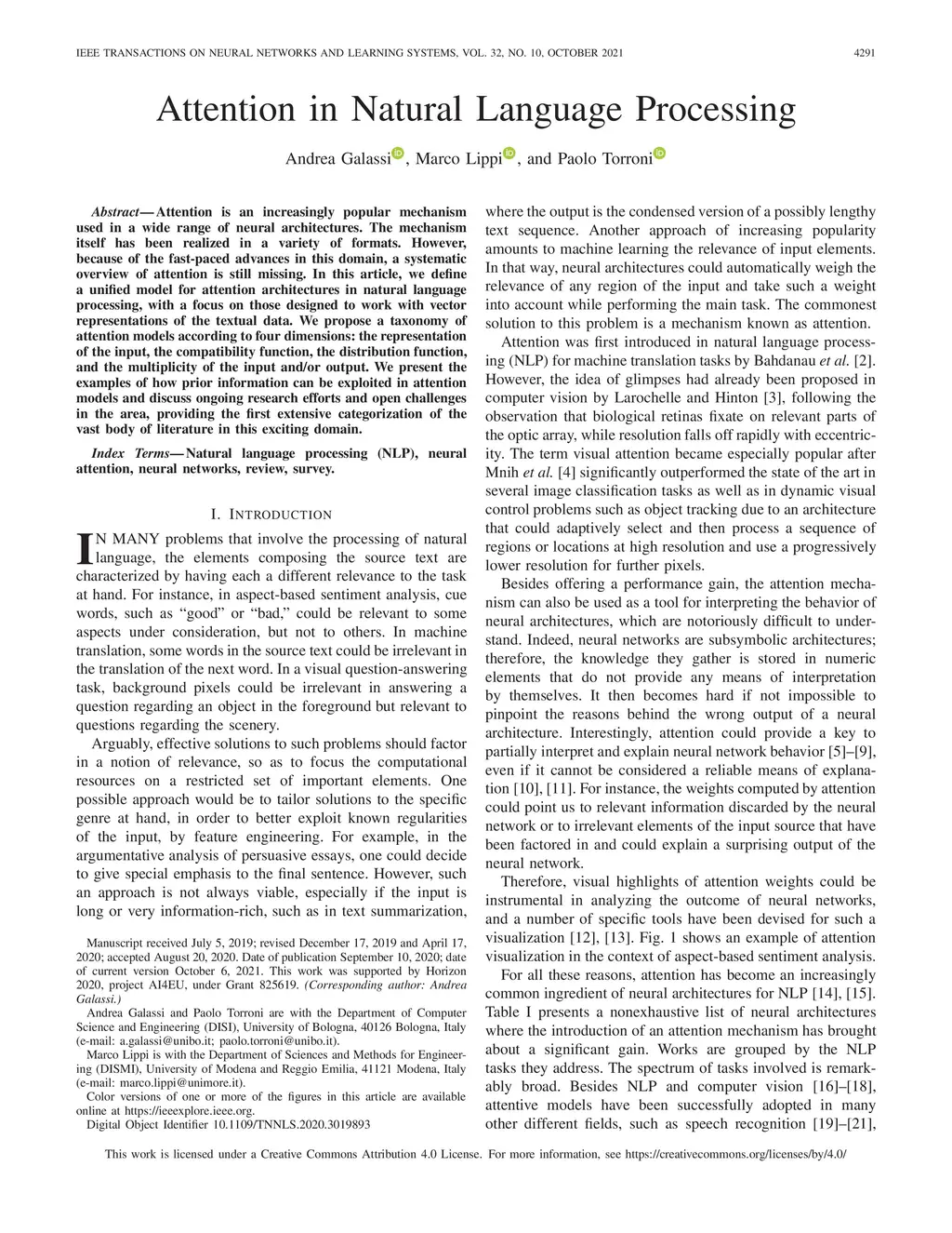 Attention in Natural Language Processing