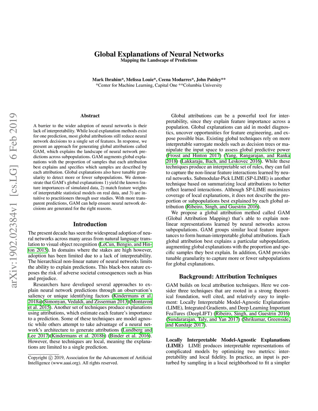 A barrier to the wider adoption of neural networks is their lack of interpretability. While local explanation methods exist for one prediction, most global attributions still reduce neural network decisions to a single set of features. In response, we present an approach for generating global attributions called GAM, which explains the landscape of neural network predictions across subpopulations. GAM augments global explanations with the proportion of samples that each attribution best explains and specifies which samples are described by each attribution. Global explanations also have tunable granularity to detect more or fewer subpopulations. We demonstrate that GAM's global explanations 1) yield the known feature importances of simulated data, 2) match feature weights of interpretable statistical models on real data, and 3) are intuitive to practitioners through user studies. With more transparent predictions, GAM can help ensure neural network decisions are generated for the right reasons.