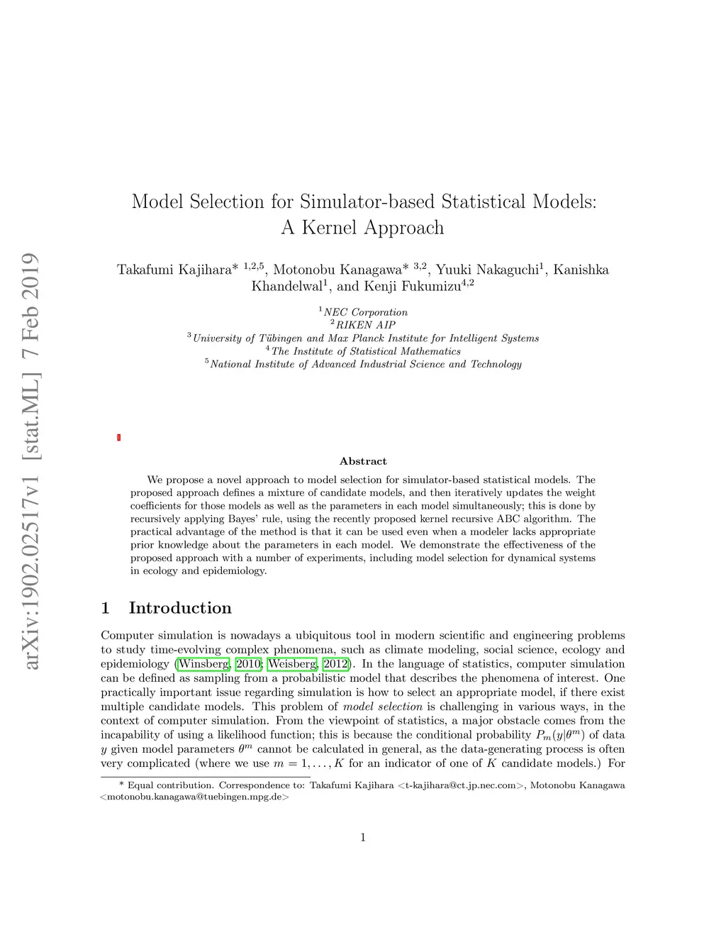 Model Selection for Simulator-based Statistical Models: A Kernel