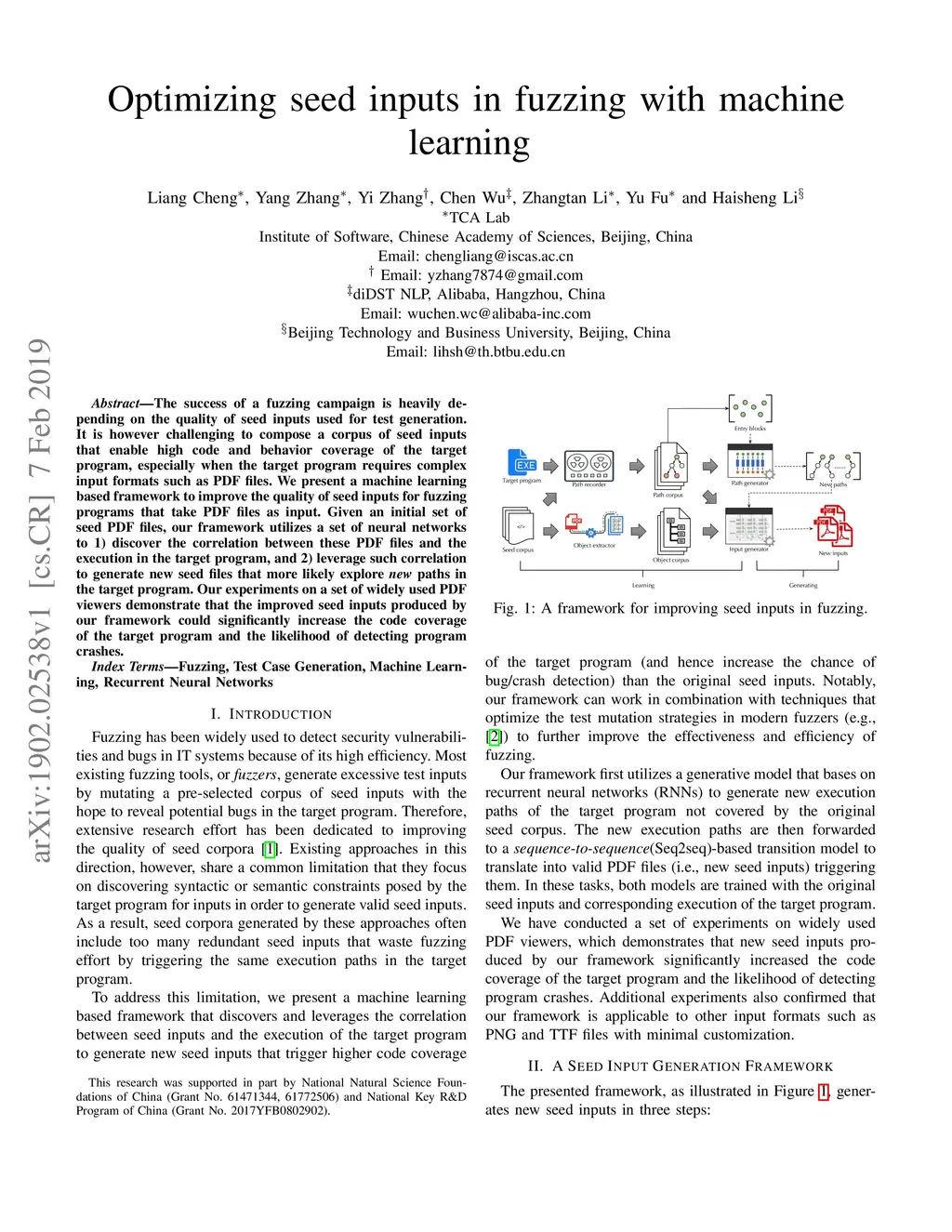 The success of a fuzzing campaign is heavily depending on the quality of seed inputs used for test generation. It is however challenging to compose a corpus of seed inputs that enable high code and behavior coverage of the target program, especially when the target program requires complex input formats such as PDF files. We present a machine learning based framework to improve the quality of seed inputs for fuzzing programs that take PDF files as input. Given an initial set of seed PDF files, our framework utilizes a set of neural networks to 1) discover the correlation between these PDF files and the execution in the target program, and 2) leverage such correlation to generate new seed files that more likely explore new paths in the target program. Our experiments on a set of widely used PDF viewers demonstrate that the improved seed inputs produced by our framework could significantly increase the code coverage of the target program and the likelihood of detecting program crashes.